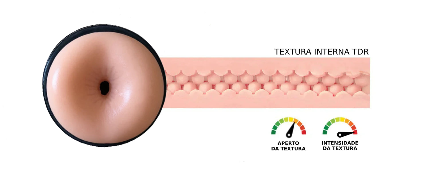TDR é feito com o nosso material exclusivo SUPERPELE®, que imita perfeitamente a pele humana. Sua textura interna ultrassensível conta com bolinhas por todo o percurso do canal de penetração, elevando ao extremo a sensação de prazer.