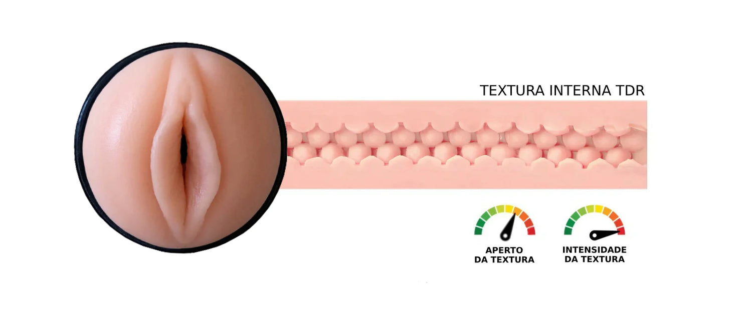 TDR é feito com o nosso material exclusivo SUPERPELE®, que imita perfeitamente a pele humana. Sua textura interna ultrassensível conta com bolinhas por todo o percurso do canal de penetração, elevando ao extremo a sensação de prazer.
